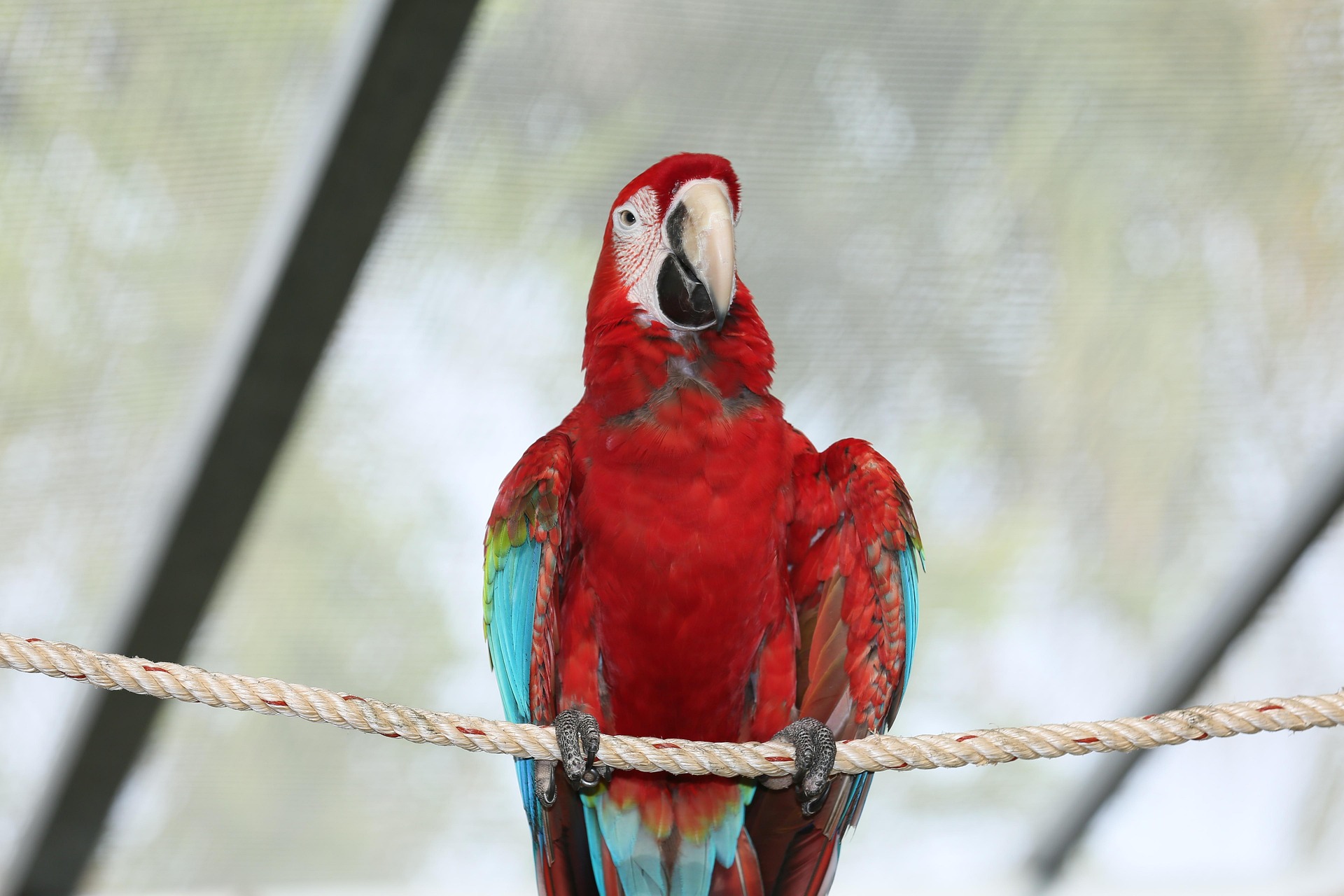 ベニコンゴウインコ(Green-winged Macaw)は、ペットとして飼育されるインコ類の中で最大級の大きさを誇ります。