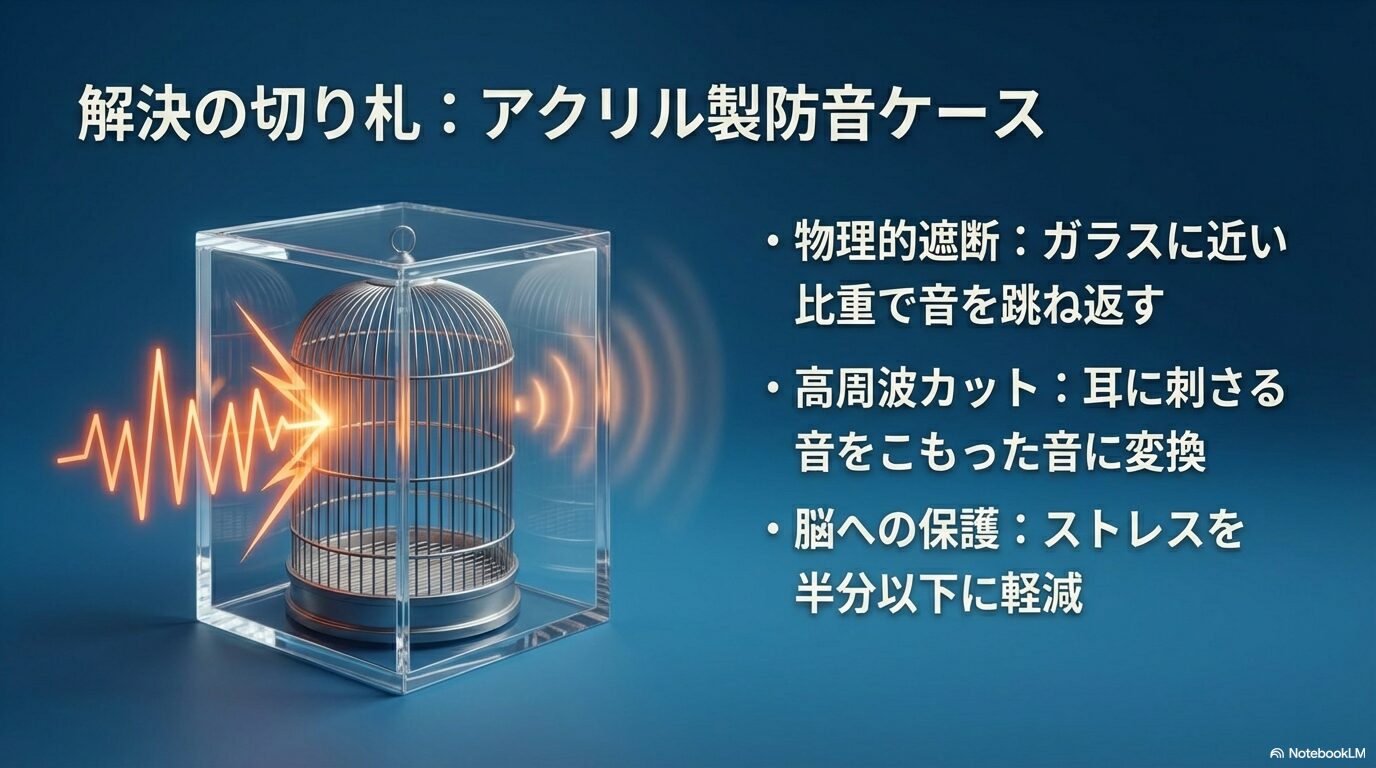 もちろん、完全に音が消えて無音になるわけではありません。しかし、脳を直接刺激する「不快な成分」がカットされるだけで、体感的なストレスは半分以下に軽減されます。これにより、飼い主さんに心の余裕が生まれ、愛鳥に対するイライラが激減するという好循環が生まれるのです。