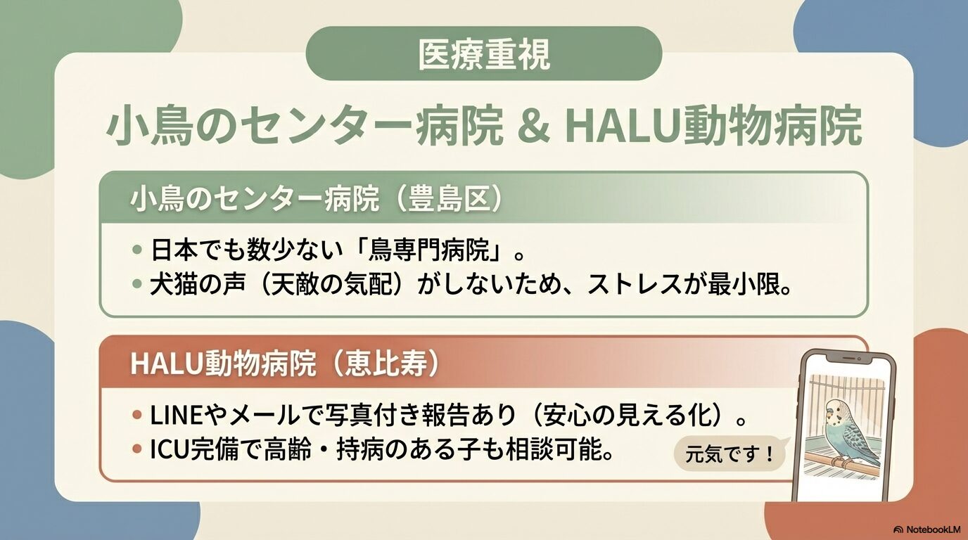 「とにかく安全第一で預けたい」「うちの子は少し体が弱いから心配」という方に心からおすすめしたいのが、豊島区にある「小鳥のセンター病院」です。ここは、日本でも数少ない鳥類専門の動物病院です。